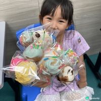 星球朱古力棒棒糖,用自制蛋糕加上奶酪,弄成球狀,將溶化的朱古力倒在表面,再用不同顏色的朱古力醬設計星球花紋,一款簡單但非常吸引眼球,適合親子的烘焙作品。 #我想試下整甜品