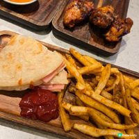 完成啦!金黃香脆的多士夾著炸得酥脆的吉列牛扒,而牛扒則維持五成熟,上桌時仍是粉嫩的賣相。牛扒依然保持肉汁豐富,而且食落有陣陣黑松露香味。加上清新的椰菜絲,食多啖也不會油膩。
