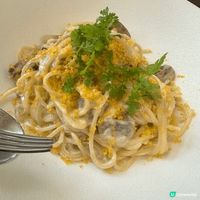 比目魚丸子上面鋪上鮮色的海膽,配上海鮮濃湯,海鮮濃湯用海鮮殼、蔬菜製成,鮮甜而不膩。