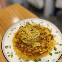 長洲除咗大魚蛋出名,呢間以蛋料理為主題嘅餐廳都好有人氣,皆因佢全部菜式都好獨特呀。必食呢款松露是蛋炒配煎薯餅,煎薯餅非常香脆,薯絲嘅存在感好強,幾有口感,薯餅本身已經有淡淡黑松露香,加埋松露炒蛋真係好濃郁。土製炸蛋即係炸豬柳包住雞蛋,切開後嘅蛋黃仍然流心,水準之作。甜品當然要食埋焦糖燉蛋,面層焦糖香脆,燉蛋香濃微甜,值得一試。 #打造韓系浪漫廚房 #estherbunny #多重滋味享受
