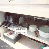 最下面的櫃要蹲下來才用到,因此可以放置不常用的煮食電器、砂鍋、飲品存貨。