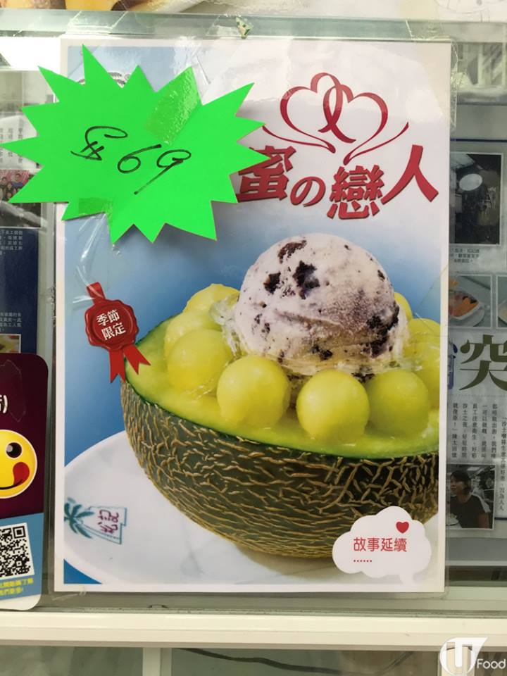 戀人出場喇!目測蜜瓜多過半個,比起日韓代表仲要足料!店方無特別表明用咗咩國家出產嘅蜜瓜,淨係話唔靚唔用、唔熟唔食!蜜之戀人賣相都幾靚仔,蜜瓜打橫切開後,有一球雪糕放中間,旁邊圍滿蜜瓜波波。
