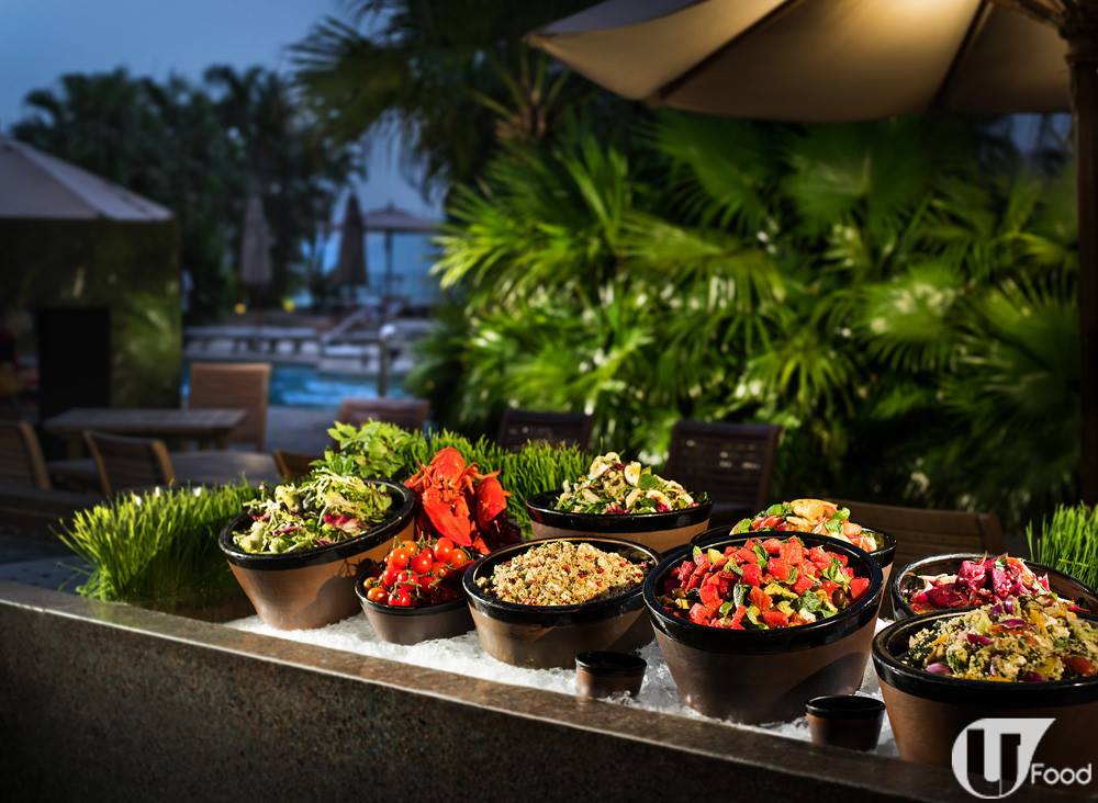 新界朋友揮手區!要數池畔 BBQ,第一時間想起沙田凱悅酒店。酒店之前推出過燒烤晚餐,反應非常熱烈!最近燒烤 buffet 回歸,亮點係大塊嘅肉眼扒,即烤即食,外面很香,內裏很多汁。不嗜牛也有好選擇,好似迷迭香焗豬腩肉,聽落好邪惡,食落卻爽口不滲油,香草幽香從肉香脂香中透出,好吸引。
