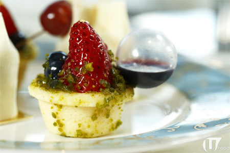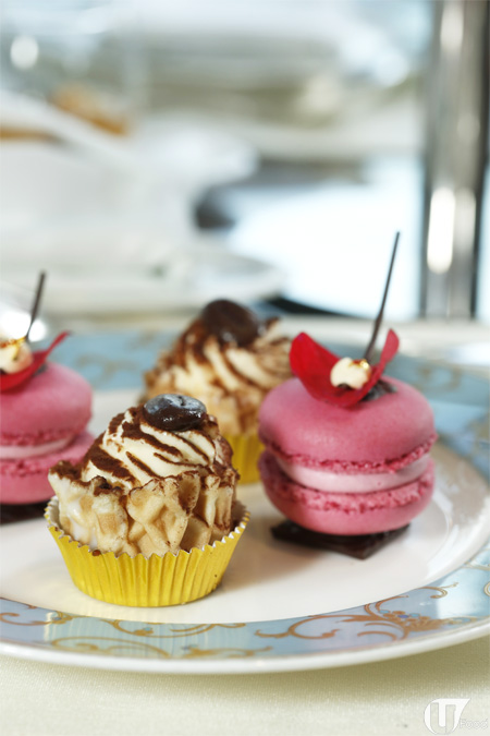 甜品之一有 紅桑梅馬卡龍,面層鋪上玫瑰花瓣,女生一定 like!意大利芝士餅底層是窩夫餅底,口感特別。