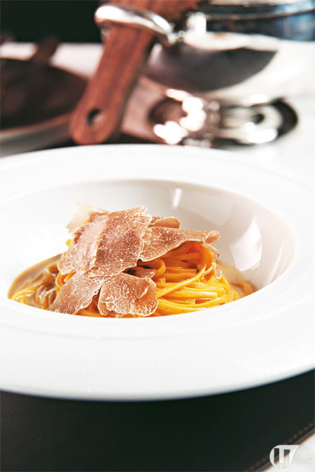 自家製的意大利蛋麵特別採用日本有機蛋,顏色和蛋香都更勝意大利貨;煮麵時也加了大量松露碎,而蛋麵比其他意粉更索汁,加了parmigiano 芝士和牛油,當然少不了白松露,香氣四溢得醉人。