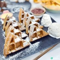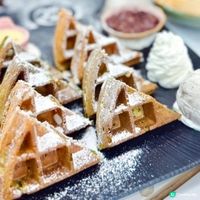 呢間舖係屯門大熱甜品舖 熱門推介宇治抹茶拼烏龍茶麻糬窩夫.$70 窩夫外層香脆,內層有陣陣嘅茶香,麻糬口感煙靭,抹茶帶甘香,烏龍茶味比較淡,加上紅豆,雪糕,忌廉, 十分足料 心太軟$48 外脆內軟,切開後流出滿滿嘅朱古力,朱古力濃郁香甜,配埋口感幼滑嘅牛奶味嘅雪糕,味道匹配 榛子朱古力石板街窩夫$65 外層香脆,入面軟淋淋,配上榛子朱古力醬,同爆谷. 口感豐富 #sanrio同你拜年 #打卡美食 #甜品 #窩夫#心太軟