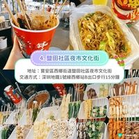 次次去深圳都淨係識行商場,不如試下去深圳夜市,感受深圳街頭美食文化!隨住多條新地鐵線開通,去深圳掃街都越嚟越方便,當中有外國興起嘅「車尾箱市集」,而且有齊潮汕腸粉、烤豬頸肉、手打檸檬茶等高性價比街頭小食,就等小編帶大家睇2026年{{hket:url-hyperlink display="深圳"}}https://ulapp.hk/k1iw3{{/hket:url-hyperlink}}必去夜市推介攻略,睇下邊間啱您心水啦!🏮🍢 ----------------- 1️⃣{{hket:url-hyperlink display=" 東門町美食城"}}https://ulapp.hk/1wi66{{/hket:url-hyperlink}} 相信唔少港人去深圳都鍾意去東門掃街,因為真係太多高性價比嘅餐廳同小食要發掘!位於老街嘅「東門町美食街」昔日曾遭清拆,近年於舊址重開,約40間店進駐,新設有堂食空間,更加方便用餐!除咗有太二酸菜魚、手打檸檬茶、阿嬤手作等人氣連鎖店之外,仲可以高CP值食到生猛海鮮、串燒等美食,附近仲可以唱K、按摩,一站式滿足港人吃喝玩樂願望! 📍地址:羅湖區東門永新路15號 🚖交通方式:地鐵「老街站」C出口步行5分鐘 {{hket:url-hyperlink display="> “Dada媽媽” 分享東門老街必食海鮮餐廳推介<"}}https://ulapp.hk/7mjfl{{/hket:url-hyperlink}} ----------------- 2️⃣ 火車站美食城 羅湖口岸附近原來新開咗一個美食街,而且距離口岸僅需3分鐘路程!美食街裡面有多間熟食餐廳及攤檔選擇,社群U Creator真人實測過表示美食全部都高CP值,煎餃、餛飩等小食都足料惹味,環境都好乾淨!啱晒附近返工人士或者過關前去掃下街啦! 📍地址:羅湖火車站綜合大樓2樓M層交通 🚖交通方式:羅湖火車站步行3分鐘 {{hket:url-hyperlink display="> “kumikofindfun” 實測羅湖火車站新開美食城有幾正<"}}https://ulapp.hk/hz7h8{{/hket:url-hyperlink}} ----------------- 3️⃣ 深圳鹽田港夜市 位於深圳鹽田區嘅「鹽田港夜市」係近年網民熱推網紅打卡景點,就連央視都曾經報道過!因為佢位於山丘上,設有觀景台可以同時打卡鹽田港海景同夜市景色,無數燈火聚於腳下,超浪漫!夜市鄰近大梅沙、鹽田漁港,裡面雲集多間特色美食:烤生蠔、小炒、炭火烤串、特色飲品等,更設有多個霓虹燈打卡位,打卡掃街都一流! 📍地址:深圳市鹽田區青雲路空翠台 🚖交通方式:地鐵8號線「鹽田港西站」轉乘巴士或計程車 ----------------- 4️⃣ 鹽田社區夜市文化街 位於寶安區西鄉街道嘅「鹽田社區夜市文化街」係深圳目前規模最大同最長嘅夜市,長約300米。裡面聚集咗100多間小食攤檔同小店,而且美食種類應有盡有,有齊炒米粉、鉢鉢雞等特色小食,吃貨輕鬆歎高質街頭小食,同時感受地道夜市氛圍! 📍地址:寶安區西鄉街道鹽田社區夜市文化街 🚖交通方式:深圳地鐵1號線西鄉站B出口步行15分鐘 {{hket:url-hyperlink display="> “Angela Chui” 詳細介紹西鄉鹽田街夜市美食<"}}https://ulapp.hk/3wsyr{{/hket:url-hyperlink}} ----------------- 5️⃣ 深圳茶博園 深圳茶博園「103車尾箱集市」係一個佔地達10,000平方米大型茶文化產業園,最出名莫過於車尾箱市集活動,可以擺放多達100輛私家車同時擺檔,售賣各種特色小食、飲品、自家製飾品、文創小物等等!私家車更裝上霓虹燈裝飾,令會場燈火通明,熱鬧又打卡able! 📍地址:深圳市龍崗區園山街道惠鹽路 🚖交通方式:搭乘M570路巴士直達「深圳茶博園」 ----------------- 6️⃣ 深圳水圍村夜市 福田口岸附近都有一間近年頗受香港人歡迎嘅夜市!「水圍村夜市」係距離香港最近嘅深圳夜市。雲集數十個小食攤檔,通常於下午4至5時就開始營業。客人可以輕鬆食到來自黑龍江嘅烤冷麵、章魚燒、肉夾饃、一元串燒等特色街頭小食,最適合快閃去掃街! 📍地址:深圳福田區水圍村 🚖交通方式:福田口岸D2出口步行10分鐘 {{hket:url-hyperlink display="> “Aria Kong” 分享水圍村夜市食咗幾多嘢<"}}https://ulapp.hk/rn4q4{{/hket:url-hyperlink}} 社群U Creator推介水圍村附近餐廳:{{hket:url-hyperlink display="https://ulapp.hk/xbvrr"}}https://ulapp.hk/xbvrr{{/hket:url-hyperlink}} ----------------- 7️⃣ 羅瑞合美食街 如果您想感受台灣夜市文化,咁就一定要去龍崗區「羅瑞合美食街」,亦都係深圳本地人嘅美食天堂!裡面有好多美食都係一蚊可入手!如烤生蠔、串燒、牛雜等,十元西安肉夾饃都係必食之選。而且夜市食物種類多元,由傳統街頭小食到新興茶飲、甜品全部都應有盡有,話係最高性價比夜市都不為過! 📍地址:深圳市龍崗區南聯社區 🚖交通方式:深圳地鐵3號線南聯站B2出口 ----------------- 招募北上U Creator l 出Post賺獎賞! 立即登記➡️ {{hket:url-hyperlink display="https://ulapp.hk/nsq06"}}https://ulapp.hk/nsq06{{/hket:url-hyperlink}} 即入U Lifestyle 港媽港爸親子福利資訊區,一站式掌握獨家親子好物和活動優惠👶➡️ {{hket:url-hyperlink display="https://ulapp.hk/8ge49"}}https://ulapp.hk/8ge49{{/hket:url-hyperlink}} 🔔 Follow《U Community社群》{{hket:url-hyperlink display="Instagram "}}https://www.instagram.com/ucommunity.hk/{{/hket:url-hyperlink}}同讚好 {{hket:url-hyperlink display="Facebook "}}https://www.facebook.com/UCommunity.hk/{{/hket:url-hyperlink}}專頁 ,睇更多U Creator品牌活動招募丶送禮丶緊貼最新美食丶旅遊打卡熱話或創作者流量密碼教學等。 ----------------- 圖片來源:網上圖片、微信公眾號 @深圳吃貨小分隊、小紅書 @深圳103車尾箱集市、美好鹽田、社群U Creator {{hket:tag-user display="享樂小丸子"}}411739{{/hket:tag-user}} 、 {{hket:tag-user display="K.L"}}1001434{{/hket:tag-user}} 、 {{hket:tag-user display="Dada媽媽"}}221685{{/hket:tag