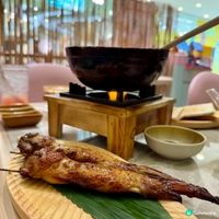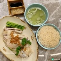 必食海南雞鑊仔飯($368),鑊仔飯上桌時有塊鋪滿蔥薑蒜、班蘭與香茅的竹網,店員會即席取走竹網,再加入蔥油及醬油,拌勻後才下雞件。雞油飯滿佈牡丹蝦乾、芋頭及臘味粒,雞件相當嫩滑,鑊邊亦有焦脆的飯焦,附帶的沾醬也風味十足。