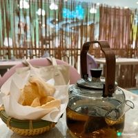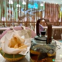 喺尖沙咀🚇海港城海運大廈入面🏢,有間充滿娘惹風情嘅🇲🇾馬來西亞餐廳「安娣瑪萊」✨!整間餐廳以娘惹宅院為設計靈感💡,大膽運用巨形壁畫🎨,近門口嗰邊用餐區裝修得好少女風😍,薄荷綠襯紫红色💜,仲刻意設計成極具打卡度嘅鳥籠花園🕊️,帶點夢幻感覺✨。 一坐低😌仲有充滿南洋風味嘅香脆🔥炸蝦片奉上,可以一路食住🧐點菜。 首先叫咗兩杯特色飲品🥤,鮮鳳梨泰式冰茶用嘅係ChaTraMue手標茶葉🍍,呢隻茶葉係泰國知名度最高嘅泰奶品牌🏆。茶底香濃,配上鳳梨果肉🍍,香甜好飲,冰涼透心❄️,同茶底好夾👍!另一杯荔枝青檸梳打就清爽啱晒🍋,荔枝香同青檸酸味平衡得好好💚,飲完成個人爽晒😆! 瑪萊沙嗲串(雞肉)🍗炭燒香氣十足🔥,雞肉串醃得入味😋,肉質軟腍多汁💦,鬆化唔韌,點埋個濃稠花生沙嗲醬🥜,惹味程度升華晒🌟! 香茅椰糖🥥烤雞全翼燒到金黃色🟡,外皮香脆😍,一咬開肉汁爆出嚟💧,香茅同椰糖嘅甜香滲透入肉🍗,好邪惡呀🤤! 椰香大蝦冬陰公🍲一上枱已經聞到濃烈酸辣香🌶️,湯底椰香味好重🥥,酸辣開胃😋,大蝦又爽又彈牙🦐,正到不得了👏! 酸辣青檸汁♨️蒸原隻釀鱿魚賣相滿分💯,原隻魷魚釀滿碎蝦肉🦑,蒸得剛熟,口感彈牙😍,青檸汁清新帶微酸🍋,好醒胃呀😆! 少爺海南雞🐓配椰子雞湯及椰香油飯🍗,真係無得頂👍!雞肉滑溜到不得了💕,雞皮爽彈,肉質鮮嫩🤤。椰子雞湯超級清甜🥥,椰香油飯香而不膩🍚,粒粒分明,送雞肉一流🌟! 上湯🦐蝦米肉末浸娃娃菜清新怡人🥬,入面有蝦米同肉末提鮮,娃娃菜浸到好入味😋,清甜爽口💚,食完啲重口味菜之後嚟呢個剛剛好👏! 壓軸甜品班蘭咖椰多士🍞賣相精美✨,班蘭汁加上咖椰醬🟢唔單止靚仔好多😍,食落咖椰多咗份班蘭清香🌿,入面仲夾咗厚牛油🧈,真係好邪惡滋味😈! 整體嚟講,😊安娣瑪萊嘅出品有質素🌟,環境靚,服務好🥰,絕對係尖沙咀高質南洋菜嘅首選,值得再嚟👍! Auntie Malay 安娣瑪萊 地址:尖沙咀廣東道3-27號海港城 海運大廈地下G16號舖 #安娣瑪萊#AuntieMalay#尖沙咀美食#海港城餐廳#馬來西亞菜#南洋美食#娘惹菜#海南雞飯#冬陰功#沙嗲串#打卡餐廳#尖沙咀打卡#HarbourCity#東南亞菜#馬拉菜#班蘭咖椰多士#釀魷魚#尖沙咀食乜好#海港城打卡#香港美食