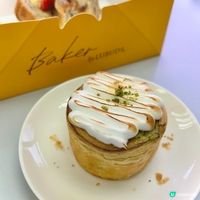 推介開心果脆脆酥卷,唧入Mascarpone芝士忌廉餡後,再塗滿香濃開心果脆脆醬,面層有炙燒雲呢拿蛋白霜,賣相精緻。Baker by Lubuds還推出了士多啤梨丹麥卷,加入新鮮士多啤梨,散發陣陣莓香。