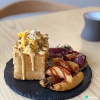 「E FOR EGG」佔地兩層,上層更設有日式榻榻米座位。餐廳主打雞蛋料理,當中以賣相精緻的韓式盒子吐司聞名,吐司會先加牛油煎香,然後放滿不同食材。最受歡迎的是金沙軟殼蟹三文魚籽海鮮沙律盒子吐司,香脆的原隻軟殼蟹加上滿滿滑蛋,吐司亦十分鬆軟,口感超豐富。芝士奶蓋招牌窩夫亦非常打卡able,窩夫上面有一隻可愛的造型小雞蛋,窩夫外脆內軟,入面夾有軟糯的麻糬粒,芝士奶蓋帶有淡淡鹹香。Cafe還推出日式定食、沙律碗、茶漬丼、甜品、咖啡等菜式。