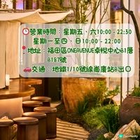 營業時間︰星期一至四及日13:00 - 22:30;星期五至六13:30 - 23:00