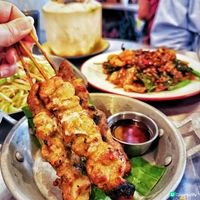 泰式生蝦(晚市$118)同樣用料新鮮,蝦肉彈牙,搭配酸辣泰式汁更加分!烤豬頸肉($98)熟度恰到好處,口感爽脆。
