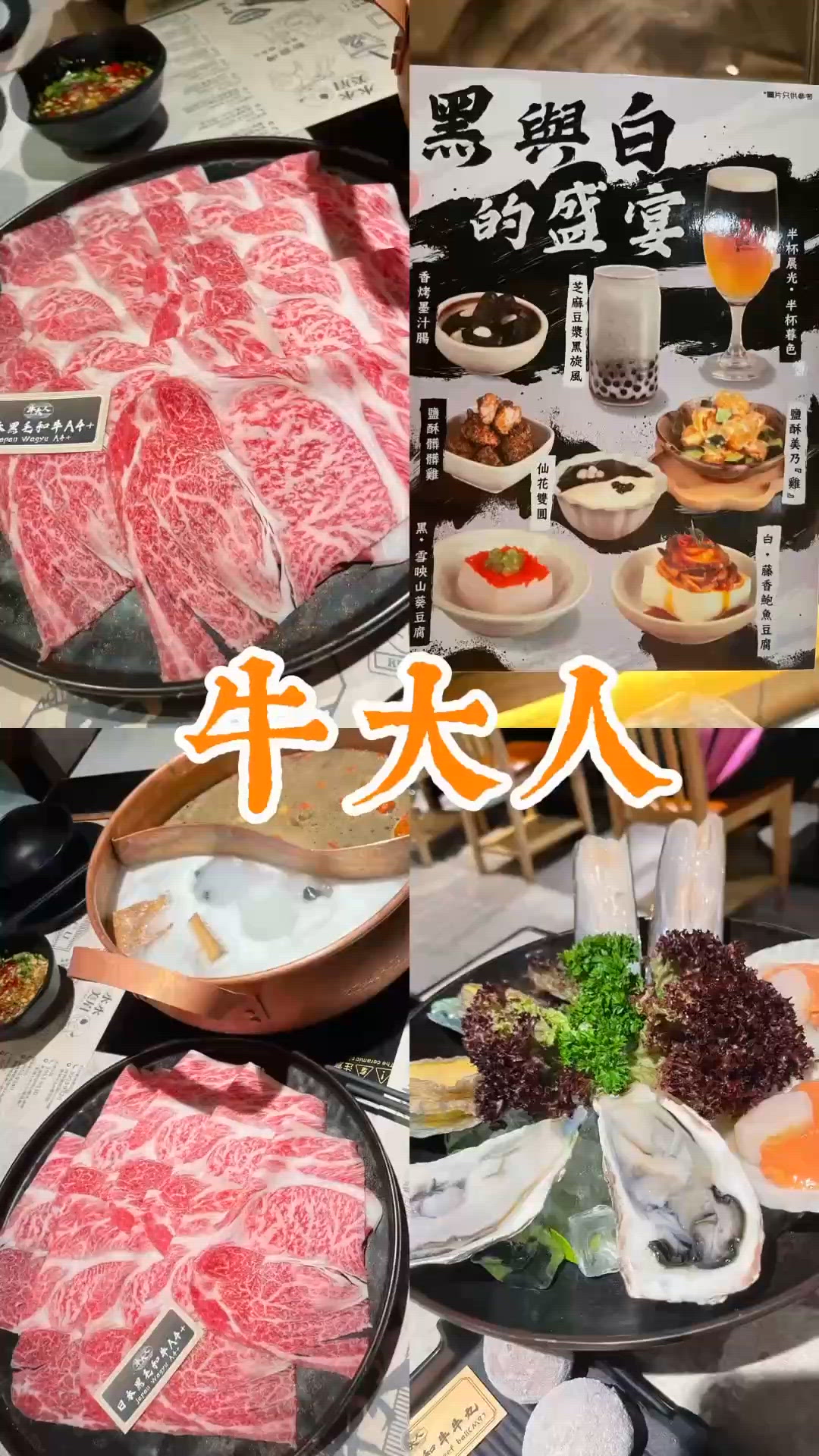 喺旺角街頭無意中收到牛大人嘅傳單,即刻被120分鐘日本A4黑毛和牛火鍋放題吸引住!成set包埋一份海鮮拼盤同和牛牛丸,仲有鮑魚任食!連酒精飲品都包一杯,CP值爆燈呀🍻! 有三款限定湯底揀,我哋揀咗🦞金湯龍蝦有米鍋,用真材實料:鮮活龍蝦、紅棗、杞子、脆米熬製,飲落去鮮甜又有層次感,超過癮!另一邊揀咗台灣鳳梨雞鍋,入口有鳳梨嘅酸甜香氣,配上雞湯嘅濃郁滑口,清新又唔膩。 肉類有日本A4+黑毛和牛、澳洲M5牛肩卷、安格斯牛小排、伊比利亞黑毛豬梅肉等,和牛油花分佈均勻,入口軟嫩甘香,仲入口即溶,老公係牛魔王表示好滿足! 至於海鮮拼盤,生蠔、扇貝、八爪魚樣樣新鮮,仲可以無限追加鮑魚、海蝦、台灣鯛魚片! 小食都唔輸蝕,推介佢哋嘅豐原排骨酥,鹹香惹味,一食停唔到! 飲品有桂韻雪梨清心飲同台式特調,食完火鍋再嚟杯清爽飲品,完美收結。 甜品區更加正,有Häagen-Dazs、Movenpick、Dreyers幾款雪糕任食,回本簡直易如反掌🍦!