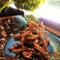 「椒鹽原條小黃魚」選用肉質細膩的小黃魚,沒有多餘的小刺,經過慢火煎製,外皮酥脆內裡嫩滑。