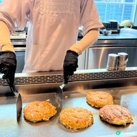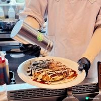 OKOSTA在大阪非常有名,提供正宗御好燒。不僅有什錦燒菜單,還準備了不使用豬肉以及素食選擇。必食廣島燒,將麵團、魚粉、高麗菜、豬肉、麵條等食材堆疊煎燒而成,一口就有多重口感。