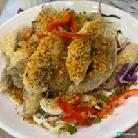 餐廳以tasting menu的形式吃大排檔美食,客人可自選6或8道菜式(一半小食+一半主菜)。小食方面,推介胡椒雞白湯雲吞,帶有椒香的湯底非常,雲吞熱辣辣又大粒;豬大腸脆皮的口感,佐酒一流!蟹餅同樣香脆,吃下去有咖哩香,加上絲絲椰菜令味道微辣中帶甜!