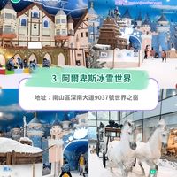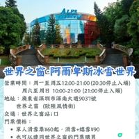 「阿爾卑斯冰雪世界」滑雪場位於深圳世界之窗景區,設有約15米寬、70米長的滑雪道,室內溫度維持在零下4至6度。另外亦設有北歐小鎮、時空隧道等多個打卡點。世界之窗滑雪場提供多種門票選項,包括滑冰票和嬉雪票,以及專業滑雪票。