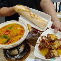 另外也有小食拼盤、招牌豬頸肉、咖喱牛腩等地道料理。咖喱牛腩味道微辣,能品嘗到辛香料的味道,將法包沾上啖啖咖喱汁好滿足!