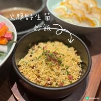 招牌野生菌石鍋土雞湯底($129),以多款精選野菌配上300天土雞,使用石鍋作為火鍋器皿,每日精心熬煮3小時,品嚐野生菇菌及土雞的天然鮮味,可額外加點山林土雞片食用($98)。除了養生野菌火鍋之外,餐廳亦有提供火腿野生菌炒飯($66)、紅燒乳鴿($78)及滷水小食等等。