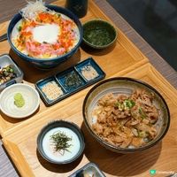 丼飯方面有6款選擇,客人亦可按照喜好選擇M至XL份量。每份丼飯定食均有沙律菜、味噌湯及日式酸菜。