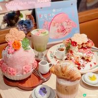 @coffeehwajeon 係以花為題嘅韓式Café ~ 我次次去都一定要野飲配花煎餅 依家仲做緊限定嘅櫻花🌸主題~ 忍唔住要去試一試! 枱枱都食緊嘅🌸《 櫻花滿開刨冰 💲118 》 刨冰細膩綿密,外層有芝士磚同櫻花餅同埋梅乾粒~中間仲有驚喜!藏咗厥餅同紅豆甜醬,煙韌有口感,整體又唔會好甜~好消暑啊! 🌸《 初開櫻花牛角包🥐窩夫 $138 》 牛角包窩夫都可以咁靚💕兩塊口感鬆脆又香甜 嘅croffle夾住香滑嘅cream同芝士蛋糕,伴碟仲有食用花同草莓乾碎點綴,酸酸甜甜幾好味~ 🍅 《 番茄海鮮炒年糕 💲112 》 我中意食呢種幼條嘅年糕多過傳統年糕~~ Chewy但唔會韌,仲好掛汁~個番茄sauce份量好夠又惹味,微酸開胃~~ 🌸🥛《 櫻花鮮奶咖啡配牛角包🥐 💲68 》 牛奶泡泡綿密,杯面再放上焗熱咗嘅牛角包,有牛油香又酥脆可口~ 🌸🫧《 櫻花樹下奶昔💲48 》 抹茶奶都有半杯份量嘅泡泡,承托住櫻惹花餅仔~ 🍥 呢度每杯飲品都會配搭一個韓式花煎餅,入面係豆沙餡~ 口感煙韌香甜,我次次去都一定會食☺️ 下次試下有機馬沙拉薑茶先~ 💕💕💕 📍Coffee Hwajeon 커피화✨ #coffeehwajeon 尖沙咀柯士甸道西1號ELEMENTS圓方水區1樓1028B號舖 #coffee#coffeeshop#cafe#koreancafe#Hwajeon#咖啡店#咖啡#韓系咖啡#花煎#韓系咖啡廳#尖沙咀# TST #圓方#Elements