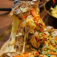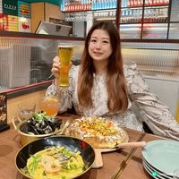 尖沙咀邪惡韓式pizza店 講起韓國菜,成日都係燒肉、炸雞、部隊鍋,食到有啲悶?最近同friend去咗呢間Pizza Maru,發現佢哋嘅菜式幾有驚喜,將韓式風味同西式煮法融合得幾好,賣相仲要勁IG-able ! 🥢【泡菜海灣芝加哥 $198】 呢個Pizza賣相幾吸引,批邊漲卜卜,入面塞滿咗忌廉芝士慕絲。切開嘅時候芝士餡會慢慢流出,打卡效果唔錯。配料方面有雙倍Mozzarella、芝士條、泡菜、炒洋蔥、蘑菇、鮮蝦同蟹肉棒。食落口感豐富,泡菜嘅微辣同酸味有助平衡芝士嘅膩滯感,味道配搭幾特別。 🍗【蜜糖柚子醬炸雞 $168】 炸雞外皮炸得幾脆,粉漿唔算厚。醬汁係蜜糖柚子醬,食到有柚子皮粒,味道清新帶少少酸甜,比起傳統韓式甜辣醬冇咁濃烈。雞肉保持到嫩滑,肉汁充足,整體幾開胃。 🥘【Maru秘製青口鍋 $188】 呢個鍋上枱時仲滾緊,熱度夠。用嘅係藍青口,size唔算好大但幾新鮮。湯底係白酒玫瑰醬,入面有車厘茄、洋蔥、蘑菇、蒜蓉同巴馬臣芝士粉。湯汁味道濃郁,有海鮮甜味同芝士鹹香。 🍝【鬥魂海鮮麻花捲粉 $188】 意粉用嘅係麻花捲粉,口感煙韌有咬口,掛汁能力幾好。配料有蠔、鮮蝦、杏鮑菇、洋蔥,用蒜蓉同香草炒香。醬汁偏向creamy但唔會太膩,食到有少少辣吊味,海鮮部分處理得唔錯,蝦爽口,蠔仔都幾鮮甜。 Pizza Maru (時代廣場) (銅鑼灣) 銅鑼灣勿地臣街1號時代廣場B1樓B110號舖 #浪漫星空約會