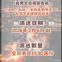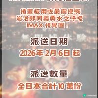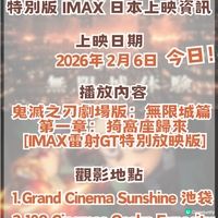 各位鬼滅迷,令人熱血沸騰嘅消息嚟喇! 《劇場版「鬼滅之刃」無限城編 第一章 猗窩座再來》特別版今日(2026年2月6日)正式喺日本全國 IMAX 影院率先上映!今次唔單止係視覺享受,更加係日本動畫電影史上嘅第一次技術突破,想知詳情即刻睇落去! 🔥 IMAX 特別版三大重磅亮點(P2) 1. 1.43:1獨家擴張長寬比(P3至P5) 今次特別版採用 IMAX 專利技術,係日本動畫史上首部以呢種規格上映嘅作品。 2. 畫面內容大幅增加(P6至P7) 部分場景嘅影像範圍會由原本嘅比例向上下延伸,,戰鬥場面嘅震撼力爆登! 3. 💎 IMAX 觀眾專屬特典(P8至P10) *A5 尺寸「IMAX 視覺插畫板」 o 派送日期: 2026年 2月 6日 起 o 派送數量: 全日本合計僅 10 萬份 o 亮點: A5 插畫板用咗最震撼嘅IMAX 視覺圖! 🎥 日本上映資訊 (IMAX 特別版)(P11) 上映日期: 2026年 2月 6日 (今日!) 播放內容: 鬼滅之刃劇場版:無限城篇 第一章:猗窩座歸來 [IMAX雷射GT特別放映版] 觀影地點:目前全日本只有呢兩間戲院做到1.43:1 比例: 1. 東京: Grand Cinema Sunshine 池袋 (池袋グランドシネマサンシャイン) 場次資訊(P12,P13,P14) 2. 大阪: 109 Cinemas Osaka Expocity (109シネマズ大阪エキスポシティ) 場次資訊(P15,P16) 🎁入場者特典資訊 (日本限定) (P17,P18) 為咗慶祝角色生日,特別準備咗以下贈品: 🌟 義勇生日驚喜:松島晃親筆繪製「義勇生日複製色紙」 日期: 2026年 2月 6日 (今日) 起 日本全國限量 30 萬份 亮點:2./8係「水柱」富岡義勇嘅生日!呢份由松島晃老師親自執筆嘅複製色紙,係對義勇粉最高嘅禮讚,送完即止,想攞就要快手! 🚀 即將上映:ScreenX & Ultra 4DX 版本(P20至P23) 官方仲準備咗更具沉浸感嘅版本隨後登場: 上映日期: 2026年 2月20日 ScreenX 版本: 270 度三面大銀幕環繞,戰鬥時呼吸法特效會喺你左右兩邊延伸。 Ultra 4DX 版本: 結合動感座椅、噴水、閃光同氣味,配合 ScreenX 視覺,係最頂級嘅官能享受! 圖片來源:X@ 鬼滅の刃公式、109シネマズ大阪エキスポシティ、グランドシネマサンシャイン 池袋 #攻略 #鬼滅之刃 #日本電影