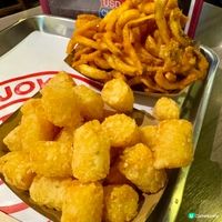 小妹今晚同老公去咗灣仔食漢堡包🍔 呢間店有點細,不過坐得幾舒適,加上電視機📺播咗不同片段點製作漢堡包🍔或其他食物,相當吸睛😍晚上🌃食時感受有酒吧feel,相當不錯👍🏻 環境:🌟🌟🌟🌟 芝士牛肉漢堡🧀 🍔 呢個包幾挺身,加上夾有不同顏色既食材,相當吸晴🌝 當中更有生既紫洋蔥🧅 酸瓜、蕃茄🍅生菜🥬半溶的芝士🧀牛肉,整體好豐盛😙 麵包🥯好鬆軟,配蔬菜🥬牛肉,口感一流~而且牛肉充滿肉汁,味道突出🥰 雜菌蘑菇芝士漢堡🍄🟫🍔 無諗過餐廳🍴會有素食漢堡🍔呢款雜菌蘑菇🍄🟫係炸過,每啖都食到菇味,超JUICY🤩加上同樣有新鮮蔬菜、蕃茄、洋蔥及沙律醬,口感超豐富🥳 薯堡🥔 好耐冇食過呢樣食物🥘呢款薯堡係細細粒既圓柱形,味道係薯餅一樣,內裡爽口彈牙,且口感香脆🤭正😌 扭扭薯條🍟 呢款扭扭薯條🍟賣相得意又好食,食落口唔會覺得好油🥰味道👅好正👍🏻 紅莓汁🥤 味道酸酸甜甜超開胃🤤 幾喜歡💕 凍檸茶🥤 味道👅不錯,配上漢堡包🍔薯條🍟一流👄 質素:🌟🌟🌟🌟🌟 喜歡食漢堡既朋友仔絕對要黎食吓呢間餐廳🍴呢間漢堡店絕對真材實料,價錢合宜,真心推介💖 價錢:🌟🌟🌟🌟🌟 ————shop info———— 📍 Burger Joys 🔍 灣仔駱克道42-50號君悅居地下E號舖 ——————————— #美食推薦#相機先食#相機先吃#吃貨人生 #香港美食#香港探店#香港美食攻略#香港生活#香港打卡#灣仔美食 #香港必吃#lBurgerJoys#西餐#薯條#漢堡包#美式漢堡#Burger#CAFE#打卡美食#旅行美食