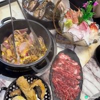小妹今晚同豬去咗尖沙咀搵咗一間食火鍋店嘅餐廳,呢間餐廳特別在於2.5小時海鮮🦞🦐🐚🦑🐟雞煲🐔放題都係$298起~仲包時令燉湯、任食海鮮、肉🥩菜類🥗等….超級抵食~而且每人加$20仲可以無限暢飲指定啤酒汽水,性價比極高~ 餐廳環境很大,座位坐得寬闊,即使枱上擺滿好多食物,但仍然有地方可以食用🐵 環境:🌟🌟🌟🌟🌟 餐廳職員先遞上燉湯🥣及炸魚皮~ 時令燉湯以金色茶壺🫖呈現,特別又易飲用⋯ 職員更表示而家只要係FB分享+讚好👍🏻就可以免費有份鮮美刺身拼盤🙀 有象拔蚌,切片墨魚生吞拿魚,大赤貝,北寄貝,大蝦🍤等,新鮮又好足料 霸王海鮮盤🦞🦐🐚🦑🐟 擺放得好岩打卡,當中有龍蝦🦞蝦、帶子、鮑魚及蟹,絕對被海鮮包圍….. 特色雞煲🧀🐔 呢款雞煲可選擇麻辣、芝士、花膠等…小妹就擇咗芝士雞煲😸雞肉份量適中,每嚿都肉質嫩滑,加上配搭濃郁既芝士🧀當芝士融化後,每嚿雞肉都有一層絲滑既芝士🧀包圍,做到拉絲效果~香濃芝士🧀配搭雞肉🍗鮮嫩,令人食到停唔到口~ 火鍋🍲 湯底方面🍲擇咗蕃茄湯底,湯底中有粟米,切嚿蕃茄,非常足料🫶🏻而且配料任點,只要係過膠餐牌上點選便可以😌食物種類好多~當中有蔬菜、餃子、肉🥩黑松露蝦滑等🤤更可按個人需要點半份或者全份食物,唔擔心點太多食唔哂🫨 價錢:🌟🌟🌟🌟🌟 喜歡食海鮮🦞既朋友仔,呢度絕對岩哂,每口都食到不同海鮮既鮮美🦐🐚🦑🐟種類選擇多,質素及份量合宜,加上價錢好抵😬 質素:🌟🌟🌟🌟🌟 ————shop info———— 📍 阿爺八鮮鍋 🔍 尖沙咀金馬倫道48號中國保險大廈1樓A&B號舖 ——————————— #hongkongfoodie#港式#香港必吃#香港旅游攻略#食在香港#香港探店#香港美食#香港打卡#香港生活#阿爺八鮮鍋#尖沙咀#尖沙咀美食#火鍋#雞煲#UCreator#香港美食#九龍美食#燒肉