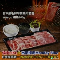 燒肉LIKE午市套餐$58起,有牛五花&豬五花腩、LIKE和牛、牛五花&迷你牛扒等選擇,星期一至五每日款式不同,即睇優惠詳情