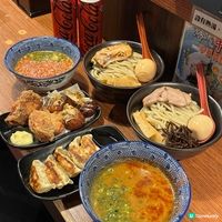 招牌「辣味噌沾麵」以自家製激辛辣味噌,融合豚骨魚介湯頭,赤紅色的濃稠湯底極度掛麵,辛辣與鮮味在舌尖爆發,是嗜辣者的極致享受;另一人氣之選「咖喱醬沾麵」建議先品嚐濃郁的豚骨魚介原味,再將附送的特製咖喱醬,直接拌入麵條;「梅沾麵」適合不吃辣的同行朋友,梅子的酸甜清新平衡濃厚的豚骨湯底,吃起來意外地清爽解膩。