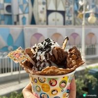 迪士尼小小世界雪糕屋,可能係迪士尼裏最抵食嘅雪糕,雪糕窩夫籃好大份,窩夫即刻用機整,好脆。 #甜品控集合吧