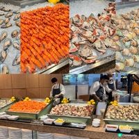 日式刺身區無限量供應大拖羅、中拖羅、赤身、阿根廷紅蝦及甜蝦等時令刺身;冰鎮海鮮區則供應受大眾歡迎的海鮮,賓客可盡情享用龍蝦(逢星期五至日供應)、麵包蟹、長腳蟹、藍青口及大蝦等多款海產。