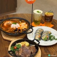 🏠 Terrace in seaside 最近去咗太古新開張嘅Terrace in seaside,一入到去已經覺得好有新年氣氛!餐廳環境放咗好多代表性嘅桔子擺設,好有氣氛。 明太子飯卷$122 首先試咗佢嘅明太子飯卷,飯卷色彩colourful,入面有明太子醬拌蝦肉、生菜、蛋絲、紅蘿蔔絲、牛蒡同醃蘿蔔,配搭得好均衡,清爽又層次分明,每一口都好開胃,食落好舒服。 韓式海鮮火鍋$388 叫咗個好期待既韓式海鮮火鍋,一大煲真係好足料,入面有原隻魷魚,咬落爽口彈牙;大虎蝦肉質結實鮮甜;青口同蜆都好新鮮。湯底偏辣,但惹味得來辣得啱啱好,冬天食特別暖胃。 鐵板爆汁LA骨$168 主菜叫咗鐵板爆汁LA骨,其車實係韓式烤牛排骨,一共有4、5塊,用鐵板熱辣辣上枱,配埋薯仔片同炒洋蔥,肉質都算淋身。不過近骨位有啲筋,但味道濃郁,值得一試。 帶點驚喜的香印提子奶蓋綠茶$62 香印提子奶蓋綠茶果然係有些驚喜,奶蓋帶淡淡香印提子香,綠茶味反而唔太突出,但最正係底下有好多香印提子果肉!啖啖果肉加奶蓋,甜而不膩,飲落好清新,係個意外之喜。 柑橘湯力咖啡$52 最後仲試咗柑橘湯力咖啡,用濃縮咖啡加柑橘果汁做基底,口感好豐富,酸甜中帶微苦,風味獨特,特別啱鍾意清新咖啡嘅朋友。 最近餐廳係1月26 - 30日:每日 3:00 - 3:14pm,限定14分鐘快閃半價優惠!(只限每天的3:00-3:14時段內所點叫的產品有效) 而1月31–2月2日:全日八折優惠,當天第 14 位客人更可享全單免費! #UCreator#打卡美食#好去處#全新景點#chill#隱世打卡點#打卡#太古新餐廳#明太子飯卷#韓式海鮮火鍋{{hket:campaign display="糕興過肥年"}}{{/hket:campaign}}