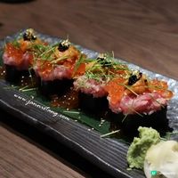食肉獸注意!店舖選用頂級鹿兒島薩摩 A5 和牛肋眼,油脂分佈均勻。師傅以朴葉承托並用炭火燒製,上桌時散發淡淡葉香與炭火香氣。最特別是配搭了大隅地區特產的沙律牛蒡及自家製黑葡萄醋醬汁,酸香可口,完美中和和牛的油膩感,入口即溶 !