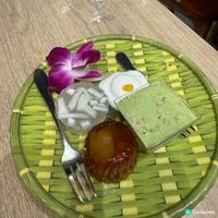 - 甘融煎餅配椰子布丁 (Krok Khiao Kathi):以香蘭甜融煎餅包裹絲滑椰子布丁餡心,口感更豐厚