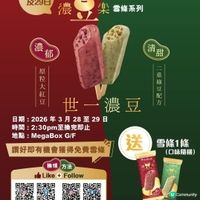 😋 今個 Weekend MegaBox X 雀巢®️牛奶公司™️大派「濃豆樂」雪條系列!新成員強勢登場!綠豆奶條嚟喇~🤤 繼上年「濃豆樂」紅豆奶條橫掃全城❤️今年輪到綠豆奶條接棒 💚🥛 世一濃豆滋味,今個春夏陪你涼住食!🤤✨ 🌱 二重綠豆配方 原粒飽滿綠豆 x 慢煮綿密綠豆蓉 雙重演繹,豆味爆發到一個點 💥 啖啖真材實料,清甜豆香仲要再創高峰!😍 食完真係會諗起港式糖水嗰種懷舊幸福感❤️ ‼️ 今個 weekend 嚟MegaBox 有免費試食機會 ‼️ 📅 日期:2026年3月28至29日 🕝 時間:2:30pm 至送完即止 📍 地點:MegaBox G/F 🔎 點樣拎免費雪條? ① Like & Follow MegaBox @megabox_hk 同 Nestle Ice Cream Hong Kong @hknestleicecream Facebook & Instagram 專頁 👍🏻✅ ② Like 現場指定 post 同埋留言 💬 👉🏻即送你雪條1條(口味隨機🎲) 數量有限,先到先得, 送完即止 想試「濃豆樂」綠豆奶條嘅朋友,快啲約實朋友今個weekend過嚟試食啦‼️💚 #MegaBox#雀巢牛奶公司#濃豆樂#綠豆奶條#紅豆奶條 #長隆放電假期