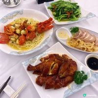 🍽️🔥 【觀塘晚市孖寶!$338食到脆皮燒雞 + 1斤重龍蝦 超滿足😍】 今晚同朋友殺入豪宴薈 東廣場店,簡直係今季最抵食的晚市驚喜!位於觀塘成業街7號東廣場2樓,環境寬敞舒適,大堂裝修夠氣派又有傳統酒樓feel,超適合家庭聚餐或朋友開心飯局~ 今次直擊晚市「開心孖寶套餐」—— ✅ 脆皮吊燒雞半隻:皮燒得金黃香脆💥 一咬「啪」一聲超滿足!雞肉嫩滑多汁,肥瘦比例完美,蘸南乳汁或梅子醬根本停唔到口~🍗 ✅ 約1斤重上湯焗西澳洲龍蝦一隻:龍蝦肉厚實鮮甜🦞 上湯濃郁入味,每一口都係海洋鮮味!最正係送埋幼滑 稻庭烏冬底,吸滿龍蝦汁,變成超邪惡的「龍蝦烏冬」🍜 食到我差啲想連汁都飲晒! 另外加咗: 🥢 海蜇燻蹄 —— 脆口海蜇配煙燻蹄花,酸酸甜甜超開胃😋 🥢 椒絲腐乳通菜 —— 通菜炒得青蔥翠綠,腐乳香+椒絲辣度剛好,超下飯!🌿 最後仲有甜品 糖水紅豆沙 暖笠笠又綿滑,完美ending🍲❤️ 服務態度好好,侍應反應快,上菜速度合理,氣氛輕鬆自在👍 呢個孖寶套餐平日只需 $338(原價$538),性價比高到飛起💰 💡 強烈推薦其他菜色: 三大皇牌任選一款平日只需$68起 — 沙汁大蝦球、老壇酸菜魚、薑蜜叉燒皇,都係招牌級數,下次一定要試埋!🔥 優惠期同產品數量有限,售完即止! 📍 豪宴薈 東廣場店 觀塘成業街7號東廣場2樓 (港鐵觀塘站B2出口,超方便🚇) #豪宴薈#HoYinBanquet#香港美食#afternoonteahk