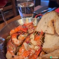 昔日漁夫的創意料理!以短細麵條炒至金黃,再吸收由石斑魚、鮟鱇魚與鮮蝦熬製的濃郁海鮮高湯,配上蒜蓉橄欖油醬,鮮味爆燈 !