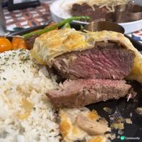 上星期去了吃晚餐,時間比較早 六點半左右,所以不用排隊。 點了威靈頓牛柳餐,跟白湯,首先個白湯真的很有驚喜,飲落好Creamy好好味,完全冇想過可以在沙田圍可以吃到如此質素的湯品。 威靈頓牛柳 肉質軟熟,生熟度適中,可見還有些紅的,不會乾/硬/鞋。 性價比極高!一定會再去!😋 #威靈頓牛柳#沙田圍美食