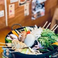 韓式醬油海鮮拼盤及辣海鮮湯底火鍋餐