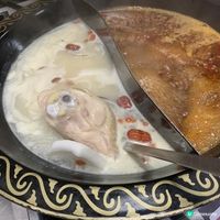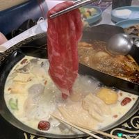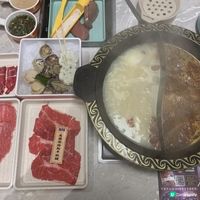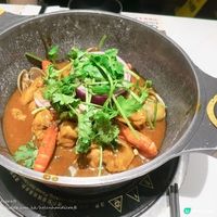 開始打邊爐先先會奉上惹味鮑魚雞煲,有雞件、蜆、大蝦和鮑魚,配上紫洋葱和芫茜炒至香氣十足,味道不會太辣,比較溫和。但要注意雞煲並非任食~